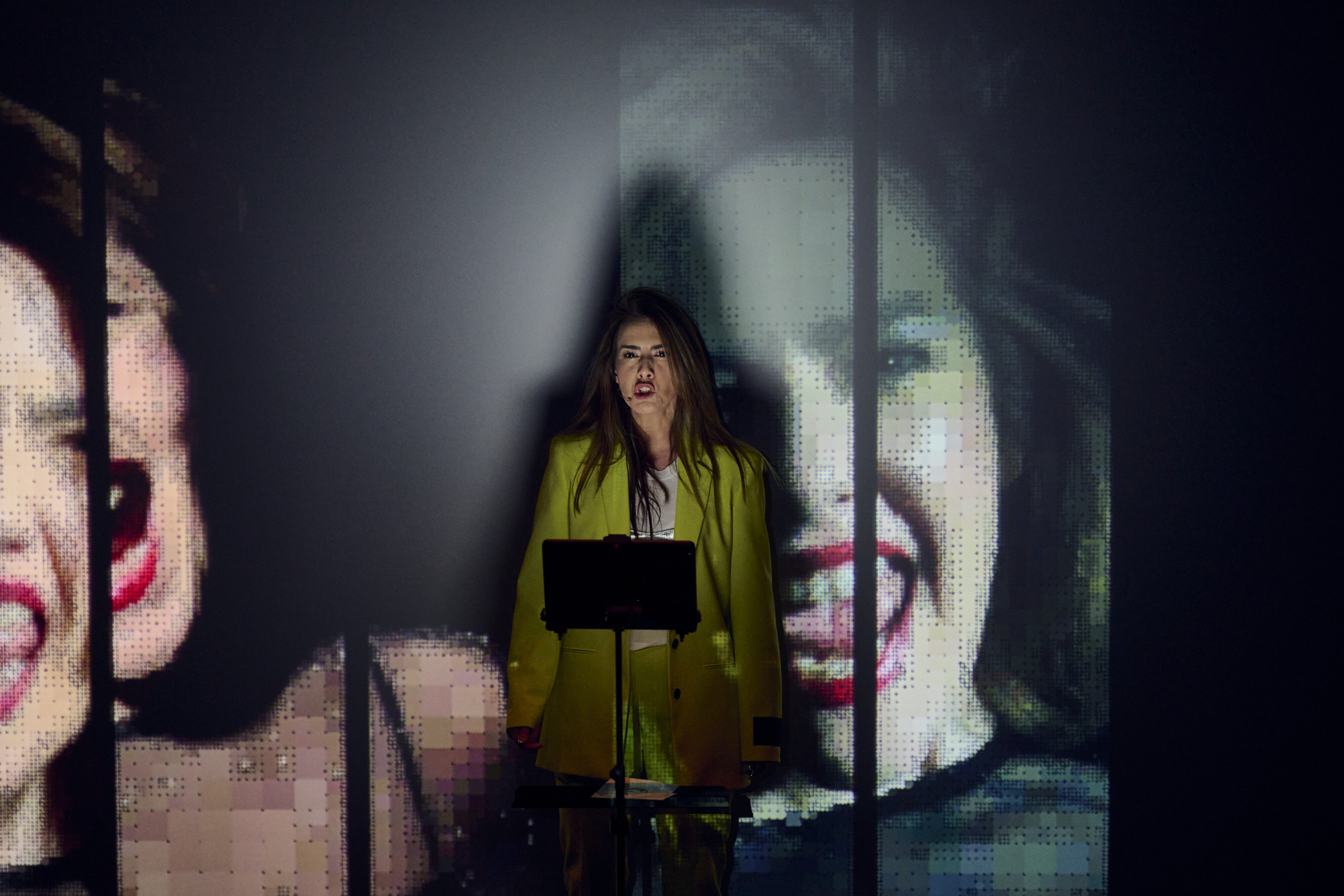 Three characters meet with a therapist to discuss problems, but soon realise the situation takes a competitive turn, with Gaia alias Johanna Vargas luring Problem I (Andreas Fischer) and Problem II (Guillermo Anzorena) into following her, but then proceeding to a display of verbal definition, repetition, and abstraction, while Dr. Fraud (Gemma Ragués Pujol) tries to make sense of their internal relations. Verbal cascades at the border of spoken and sung text.